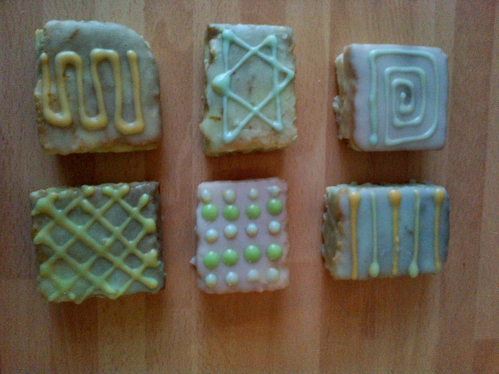 This was a madeira cake I cut up and iced with orange, blue, green and yellow icing - they were really nice!